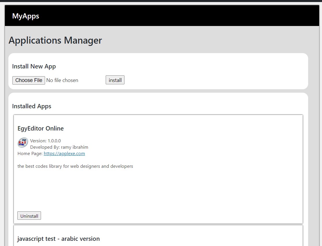 “My Apps” is a very useful tool that allows you to install and run your online web applications on your website, Developed by Ramy Ibrahim .